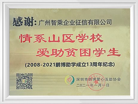 Certificate of Appreciation for Love for Mountain Schools, Love for Poverty-stricken Students